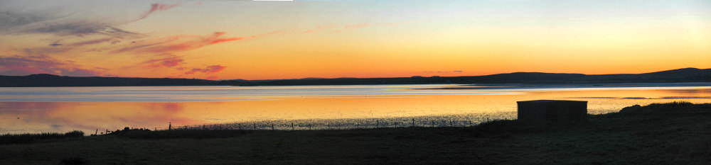 This view is actually a panorama, created from four individual pictures. It was taken on my last full day on Islay, on my way back from watching the final Islay Malt Pillage. The view is north and west from near Pennycraig Battery at the top of Loch Indaal. I think the sun had already set at this point, only the afterglow illuminating the sky in a variety of reds, oranges and yellows. A beautiful end to a great holiday.