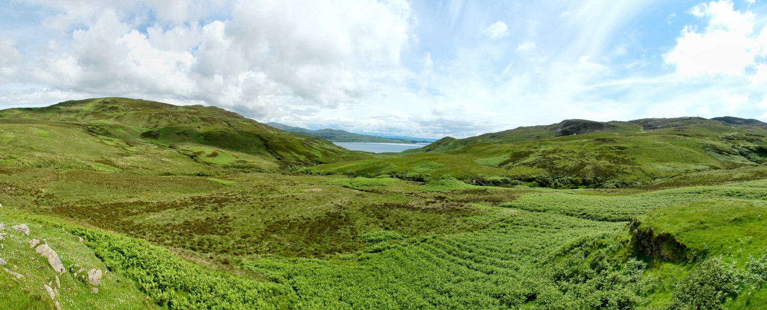 Biggerise the Glen Logan, east coast of Islay, panorama.