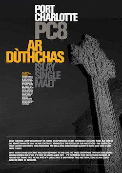 The series is called ‘Ar Dùthchas’, Gaelic for ‘land of our fathers’ or ‘land of our heritage’. While the previous tins were showing people (the distillery team and Islay people) this series now shows impressions of landmarks on the Rinns of Islay where Bruichladdich is located. In the information sheet on the right you can see the Kilchoman Cross.